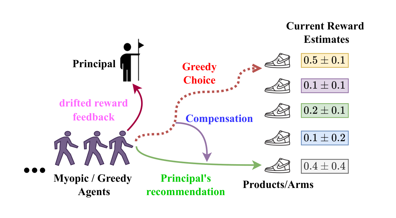 I design algorithms that are provably efficient, even in settings where actions are constrained and global information is unavailable. This agenda has led to contributions in incentivized exploration, where agents are compensated to overcome myopic behavior under non-stationary rewards, and in graph-constrained bandits, where local movement and dynamic connectivity dictate exploration and learning.